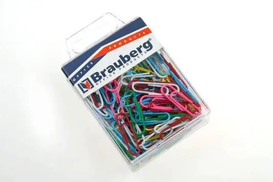 Скрепки Brauberg 28мм 100шт цветные в пласт боксе