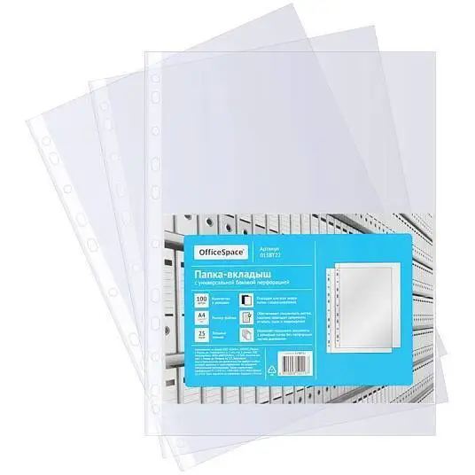 Перфофайлы OfficeSpace А4 100шт 25мкм
