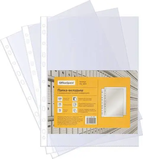 Перфофайлы OfficeSpace А4 100шт 30мкм