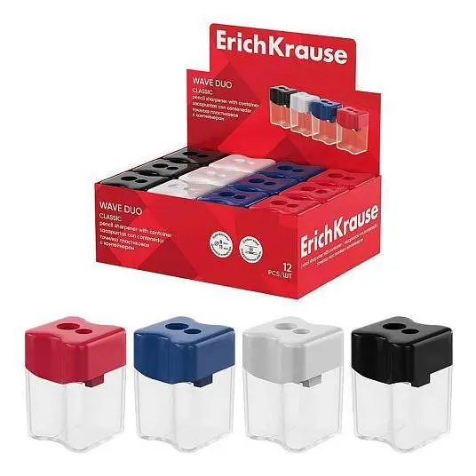 Точилка пластиковая ЕК Волна Дуо, Классика на 2 отв, с контейн.