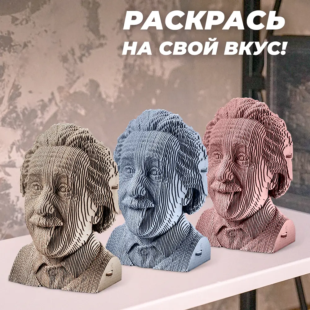 Знаменитый ученый с слегка безумным видом, один из основателей современной теоретической физики теперь в виде картонного 3D конструктора.