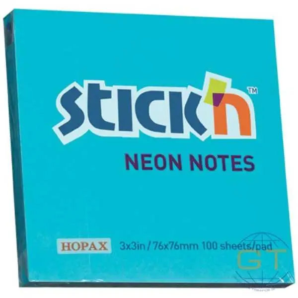 Бумага с клеевым краем 76х76мм 100л неон ярко-голуб