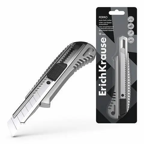 Нож канцелярский ЕК 18мм с автоматической фиксацией, металл